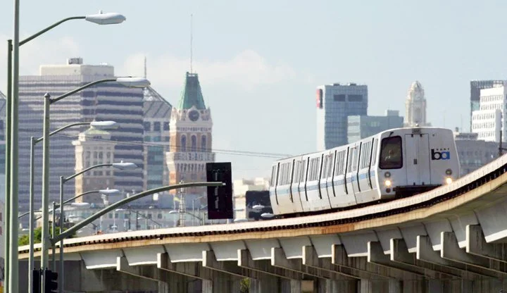 The region is connected by an extensive public transit network, including Caltrain, BART, VTA light rail, ferries, and buses.